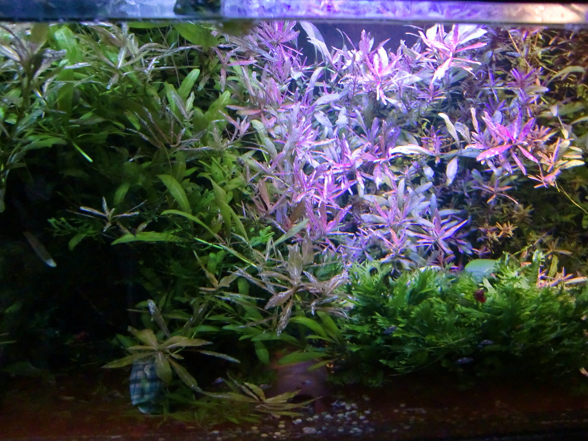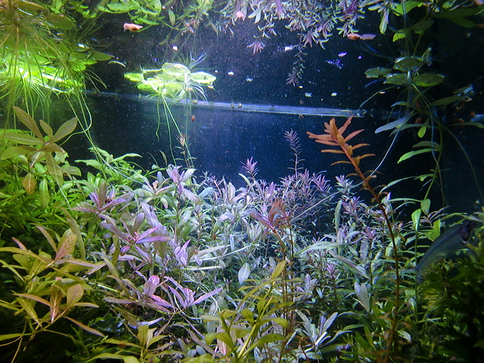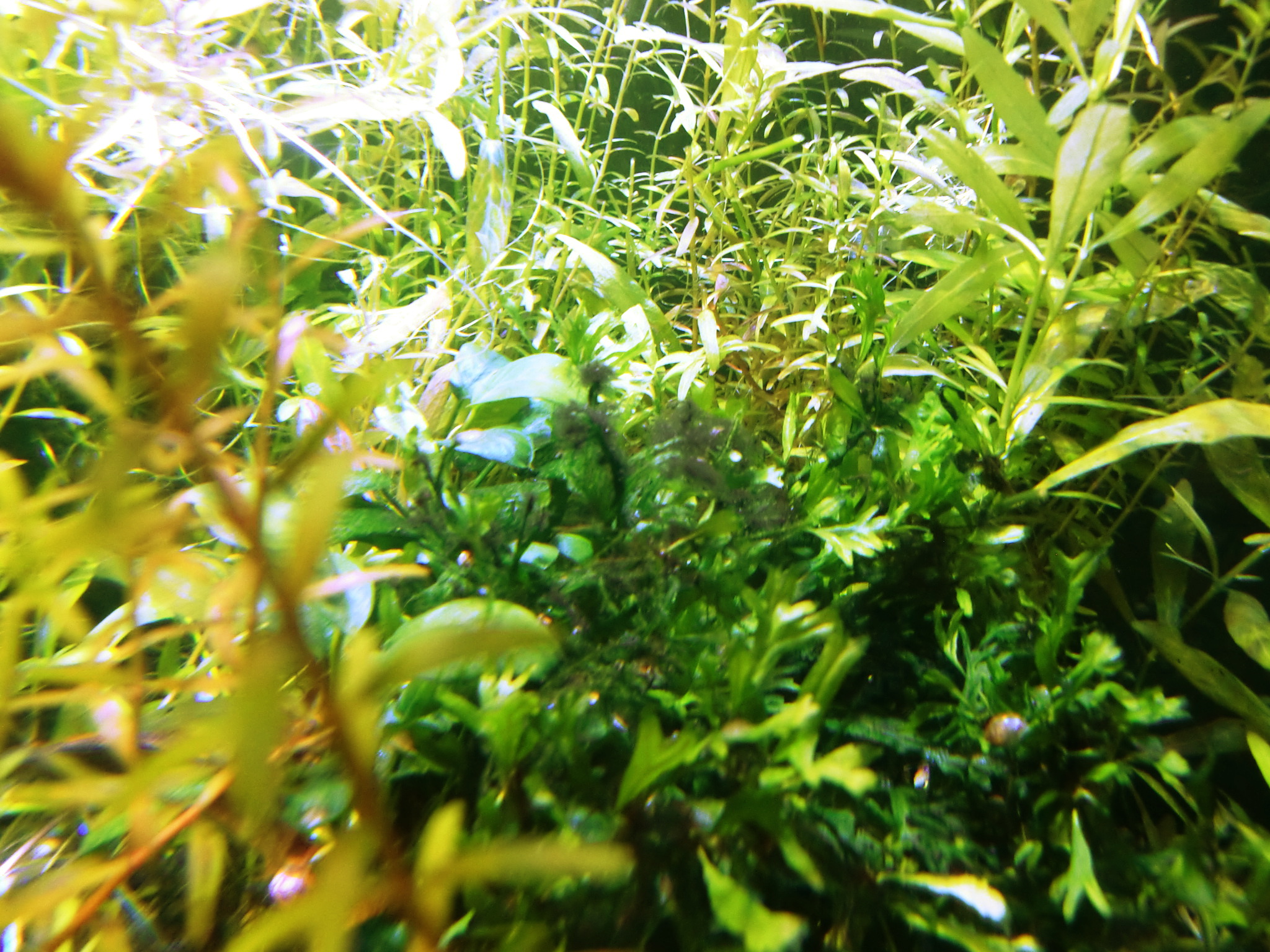 99年に入手してから2012年5月リセットしたこの水槽では一時期コケ(藻類)が蔓延しましたが、水草の量が増えるに従いコケが減ってきています。2014年新春コケなしです。