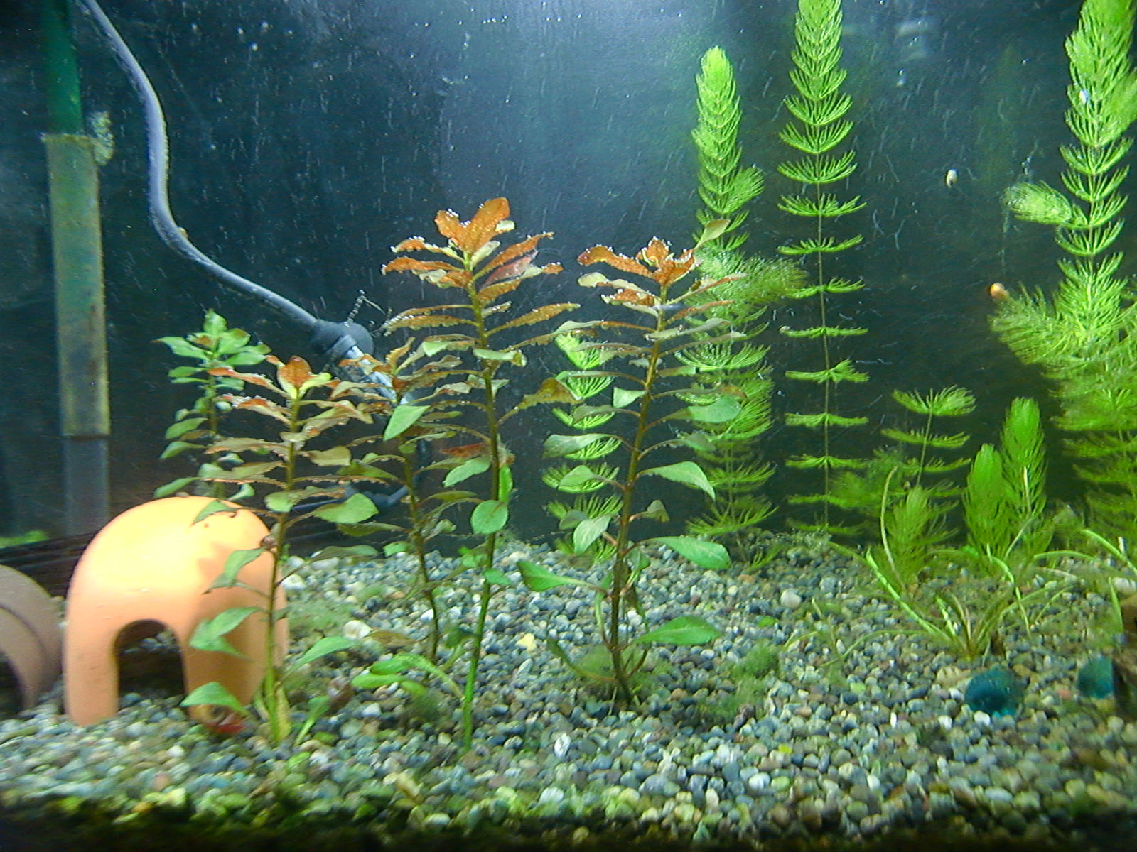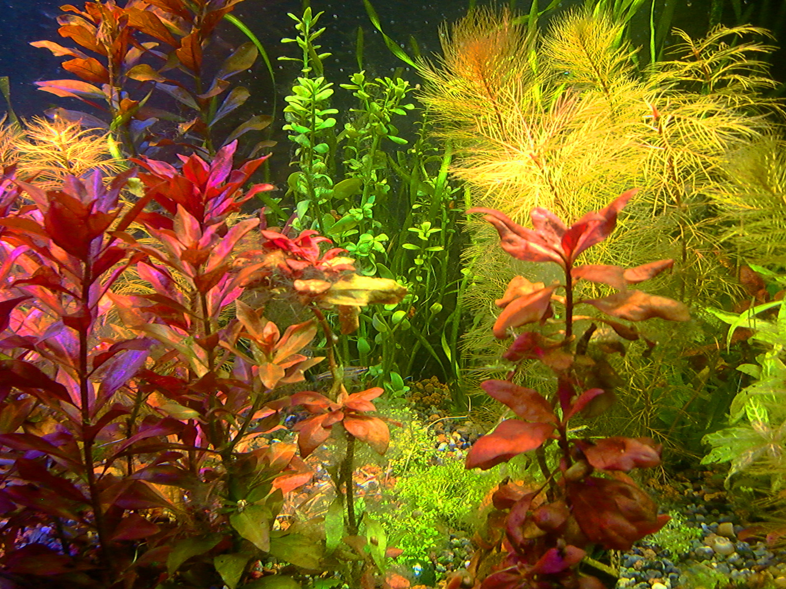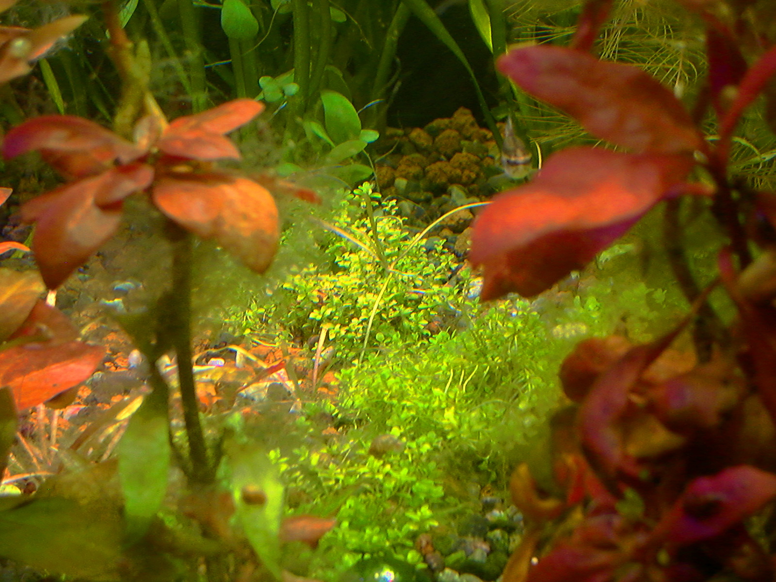 水槽の近況 その他 2019年02月19日 写真アップしました。 ザ・赤系水草っていう感じの 赤さは自慢ですが… 今も藻類と戦争中です。 モズク状の藻がいっぱい。 鉄分を添加したせいですが、理由はあとで書きますが、この葉を赤くするために鉄分を入れたわけではないです。 ルドウィジア・レペンス・ルビンの葉は鉄分のみの肥料を入れていない時から赤かったのです。 8月下旬の写真ですが、緑色の水上葉で届いたルビンの状態。 右側に生えているのは同時に届いたテネルス。本数は若干増えたものの矮小化してしまいました。 ルビンが伸びてきたところ。赤い水中葉を出しています。 冒頭の写真のように赤くなっていく途中の段階です。 マツモを植えてありますが、根無し草だと知らずに買ってしまいました。底に植わった部分から白くなって溶けてくる成長の仕方をするんですね。 育ちは速いので、これ中心の水槽にするならいいのですが、伸びてきて他の草に影を落とすほどの長さにならないと、栄養を吸い取ってくれないようで、短くカットしてしまうと、根元が細くなって溶けて藻類の原因になるようだったので、現在は全部抜いてしまいました。 もしも、こんな風にできたら楽しいなと思ってくれたらこちらの記事もどうぞ。 藻類対策にはなんといっても高速成長する水草の量が大事だと思っていますが、マツモは撤去してしまったし、この中では育ちの早い水草で調子がいいのがレッドミリオフィラムだけになりました。 底床肥料が切れてきて、量の多いルドウィジア・レペンス・ルビンの成長がひと段落してしまったから、藻類が好む養分を吸ってくれなくなっているようです。 ネットが浮いてますが後で書きます。 成長が早いはずのハイグロフィラ・ロザエネルヴィスも入っているのですが、入れる前に農薬抜きを2か月以上していたからか、かなり弱ったままです。 レインキーも一緒に導入したので同様に弱っています。 新しい葉の色揚げには成功しているけど、古い葉が老化してきていて、成長が非常に遅いので草全体がまだまだ小さく、カットするわけにいかない感じです。 奥の緑色の丸い葉のバコパ・モンニエリも同様の条件でしたが、なぜかこれは平気そうでした。ただやっぱり成長が基本遅いようです。 シュフェルディ・ドワーフ・ザリガニ。 やんちゃな生物がいると雰囲気がかわりますね。 ザリガニの上に映っているボロボロの葉はレインキーです。 葉が赤いまま古くなってきている写真は珍しいでしょ? レインキーと言えば尖った葉をしてるものですが、購入時は尖っていました。 それが悪い環境につけていたら丸まってしまいました。たぶんヒーターがなかったせいだと思います。この水槽に植えた後に出てきた新しい葉も何故か丸いです。 この葉のふちについたモヤモヤしたものもモズク状の藻類です。 「かなりウツ(笑)」な キューバパールグラスの状況 奥にあるツブツブした小さい葉の水草はキューバ・パールグラス。 かなり好きなんですがあんまり増やせません。 藻類を取ると一緒に抜けるので困っています。 普通は手前に植えますね。 先に言っておくとキューバパールグラスについてはとくに超初心者です。それを踏まえてこの後を書かせていただきますのでご注意ください。 水槽水は6in1試験紙で硝酸塩濃度が75以上の色をしていたので、(個人の意見的に)窒素不足ではないはずだと考えていますが、キューバパールグラスの成長は悪いままだし、非常に抜けやすい状況が購入時から3か月後の現在まで続いています。 根張り悪し 浮いている部分を見ると、根っこがくねっていて、真下へ伸びて底へたどり着こうとしていないような、不健康な感じに思えた(印象)ので、「もしかして形態形成ができない?なら鉄分を入れてみようか」という軽い気持ちで、鉄分のみの肥料を入れてみた結果が大失敗。 入れすぎて冒頭の写真のようなモズク状藻類の爆殖を引き起こしました。 赤系水草のために鉄分を入れたわけではないのです。 殖えてはいるけど キューバパールグラスは購入時に、とても状態が良かったですが、現在そこからボリュームアップしていない感じです。 成長はしているようですが、絡んでくる藻類を手で取るときに全部浮いてしまったり、少しずつ取れてきてしまい、それを植えなおしたりしているのですが、植える場所がなくて困っています。 抜けたやつが植えれない すぐ隣に植えこむと、ピンセットを引き抜くときに隣のグラスも一緒に抜けるんです(笑)。 なので植えられなかったものは、前述のネットを浮かべてそのなかに入れたりして放置しちゃってます。これが藻類をまた殖やしてしまう要因になってそうです。 理想は、ルドウィジア・レペンス・ルビンの根本にも、ジャンジャンはびこってくれることだったのですが、そのような成長スイッチを入れることはできませんでした。 古い大磯砂をベースに園芸用ソイル(これも藻類の原因かも)を混ぜ混