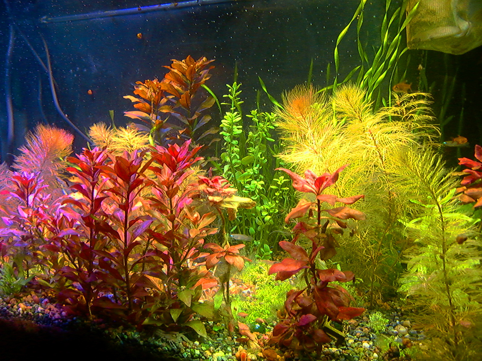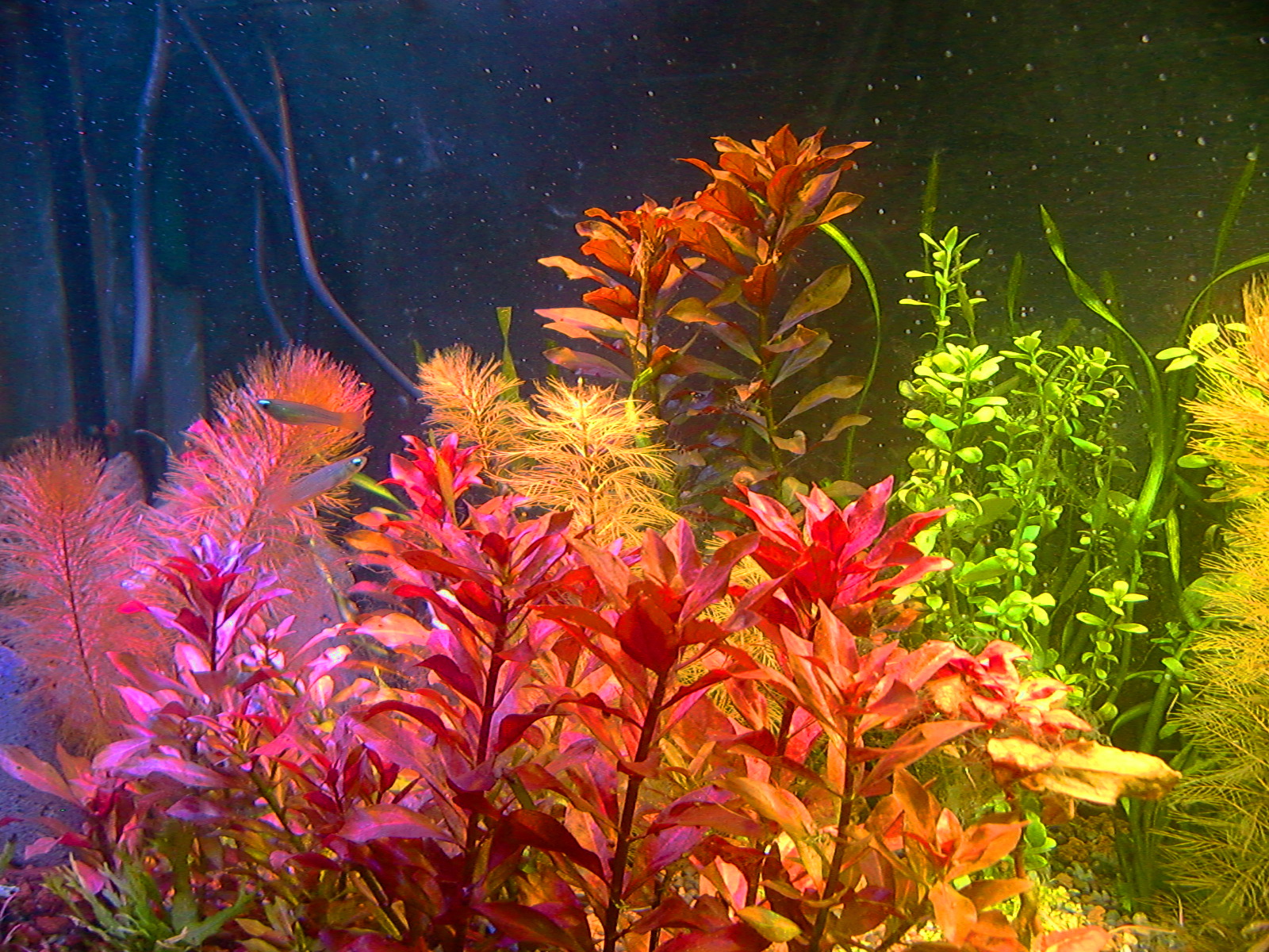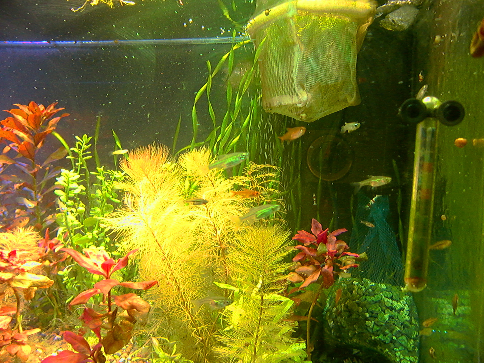 水槽の近況 その他 2019年02月19日 写真アップしました。 ザ・赤系水草っていう感じの 赤さは自慢ですが… 今も藻類と戦争中です。 モズク状の藻がいっぱい。 鉄分を添加したせいですが、理由はあとで書きますが、この葉を赤くするために鉄分を入れたわけではないです。 ルドウィジア・レペンス・ルビンの葉は鉄分のみの肥料を入れていない時から赤かったのです。 8月下旬の写真ですが、緑色の水上葉で届いたルビンの状態。 右側に生えているのは同時に届いたテネルス。本数は若干増えたものの矮小化してしまいました。 ルビンが伸びてきたところ。赤い水中葉を出しています。 冒頭の写真のように赤くなっていく途中の段階です。 マツモを植えてありますが、根無し草だと知らずに買ってしまいました。底に植わった部分から白くなって溶けてくる成長の仕方をするんですね。 育ちは速いので、これ中心の水槽にするならいいのですが、伸びてきて他の草に影を落とすほどの長さにならないと、栄養を吸い取ってくれないようで、短くカットしてしまうと、根元が細くなって溶けて藻類の原因になるようだったので、現在は全部抜いてしまいました。 もしも、こんな風にできたら楽しいなと思ってくれたらこちらの記事もどうぞ。 藻類対策にはなんといっても高速成長する水草の量が大事だと思っていますが、マツモは撤去してしまったし、この中では育ちの早い水草で調子がいいのがレッドミリオフィラムだけになりました。 底床肥料が切れてきて、量の多いルドウィジア・レペンス・ルビンの成長がひと段落してしまったから、藻類が好む養分を吸ってくれなくなっているようです。 ネットが浮いてますが後で書きます。 成長が早いはずのハイグロフィラ・ロザエネルヴィスも入っているのですが、入れる前に農薬抜きを2か月以上していたからか、かなり弱ったままです。 レインキーも一緒に導入したので同様に弱っています。 新しい葉の色揚げには成功しているけど、古い葉が老化してきていて、成長が非常に遅いので草全体がまだまだ小さく、カットするわけにいかない感じです。 奥の緑色の丸い葉のバコパ・モンニエリも同様の条件でしたが、なぜかこれは平気そうでした。ただやっぱり成長が基本遅いようです。 シュフェルディ・ドワーフ・ザリガニ。 やんちゃな生物がいると雰囲気がかわりますね。 ザリガニの上に映っているボロボロの葉はレインキーです。 葉が赤いまま古くなってきている写真は珍しいでしょ? レインキーと言えば尖った葉をしてるものですが、購入時は尖っていました。 それが悪い環境につけていたら丸まってしまいました。たぶんヒーターがなかったせいだと思います。この水槽に植えた後に出てきた新しい葉も何故か丸いです。 この葉のふちについたモヤモヤしたものもモズク状の藻類です。 「かなりウツ(笑)」な キューバパールグラスの状況 奥にあるツブツブした小さい葉の水草はキューバ・パールグラス。 かなり好きなんですがあんまり増やせません。 藻類を取ると一緒に抜けるので困っています。 普通は手前に植えますね。 先に言っておくとキューバパールグラスについてはとくに超初心者です。それを踏まえてこの後を書かせていただきますのでご注意ください。 水槽水は6in1試験紙で硝酸塩濃度が75以上の色をしていたので、(個人の意見的に)窒素不足ではないはずだと考えていますが、キューバパールグラスの成長は悪いままだし、非常に抜けやすい状況が購入時から3か月後の現在まで続いています。 根張り悪し 浮いている部分を見ると、根っこがくねっていて、真下へ伸びて底へたどり着こうとしていないような、不健康な感じに思えた(印象)ので、「もしかして形態形成ができない?なら鉄分を入れてみようか」という軽い気持ちで、鉄分のみの肥料を入れてみた結果が大失敗。 入れすぎて冒頭の写真のようなモズク状藻類の爆殖を引き起こしました。 赤系水草のために鉄分を入れたわけではないのです。 殖えてはいるけど キューバパールグラスは購入時に、とても状態が良かったですが、現在そこからボリュームアップしていない感じです。 成長はしているようですが、絡んでくる藻類を手で取るときに全部浮いてしまったり、少しずつ取れてきてしまい、それを植えなおしたりしているのですが、植える場所がなくて困っています。 抜けたやつが植えれない すぐ隣に植えこむと、ピンセットを引き抜くときに隣のグラスも一緒に抜けるんです(笑)。 なので植えられなかったものは、前述のネットを浮かべてそのなかに入れたりして放置しちゃってます。これが藻類をまた殖やしてしまう要因になってそうです。 理想は、ルドウィジア・レペンス・ルビンの根本にも、ジャンジャンはびこってくれることだったのですが、そのような成長スイッチを入れることはできませんでした。 古い大磯砂をベースに園芸用ソイル(これも藻類の原因かも)を混ぜ混