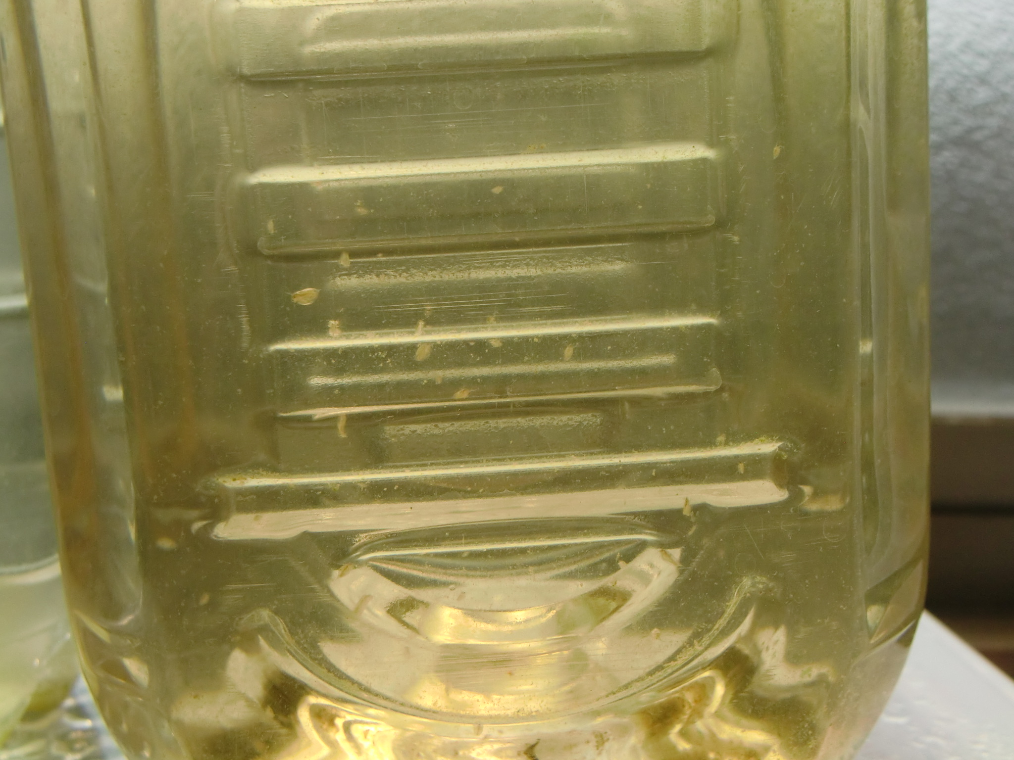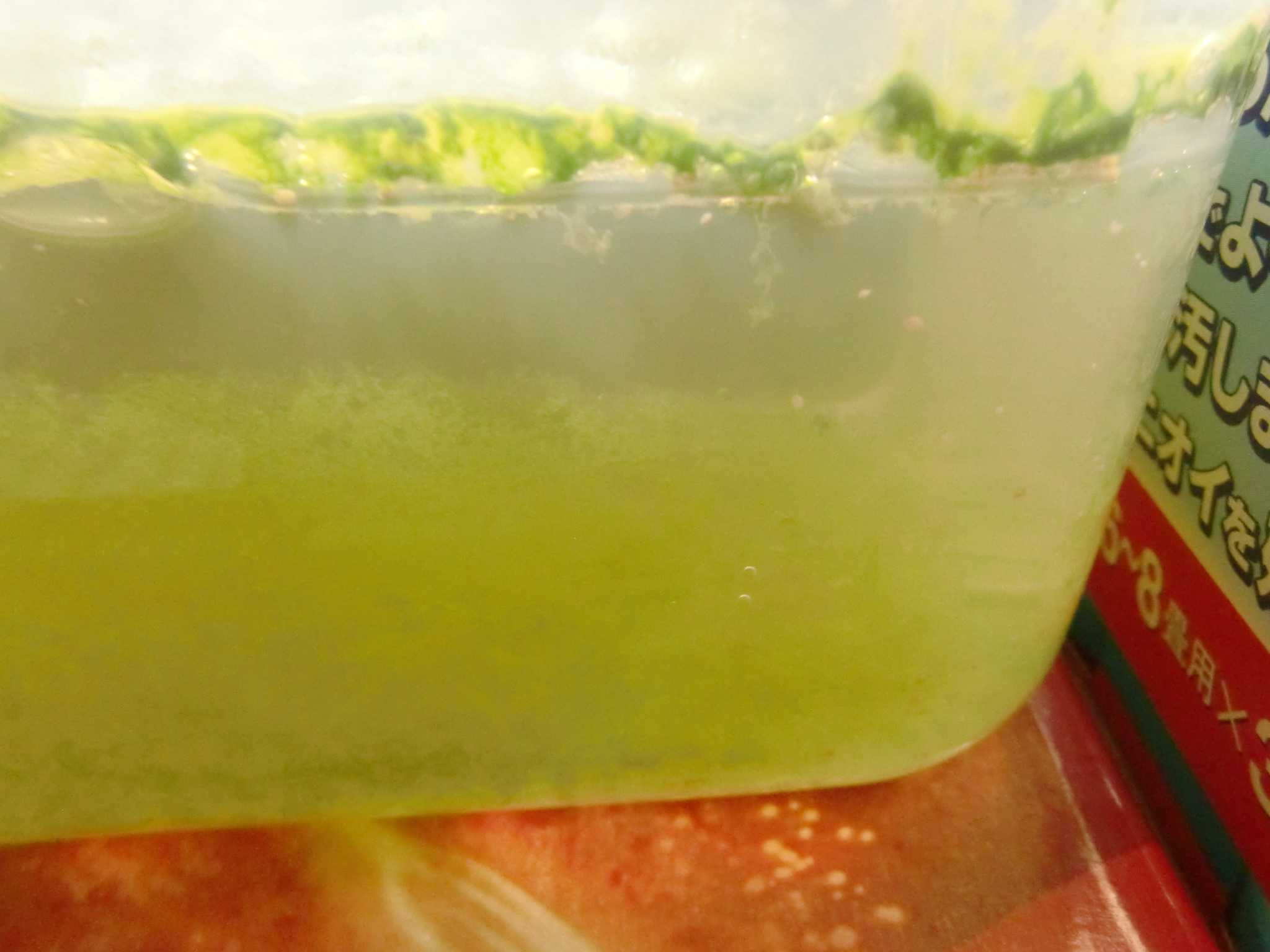 ミジンコ購入 生きもの 2014年01月18日 水槽にミジンコがいたら浄化作用あるのかな?と思って購入して見ました。追記2014.3.17、ボトルに入れたミジンコは現在まで2ヶ月ほど維持できました。 意外とでかくて元気いいですね。 卵ではなく成体でも普通に購入できるんですね。卵生メダカを扱っているアントニオさんで買いました。 多めにくれたのでペットボトルに半分残して、半分水槽に入れました。 何匹かは水槽中を泳ぎまわっていましたが、 翌日にはまったく姿が見えず…こりゃ定着しなさそうですな。 ペットボトルに入れた方は元気よく跳ね回っています。 もし変化があったらこのページでご報告します。 2014.3.15以降追記 まだエサにするほど安定して増やせてません。 ペットボトルのミジンコを窓辺に置いてたら、昼の太陽熱で全滅。 3つにわけてたので太陽光の当たらない場所にあった2つは平常に維持してます。 また小分けしなおして、遮光ではないけど暗いところに置いたものは消えてしまいました。 エサはたまにイースト菌、粉にした熱帯魚の餌などをあげています。量は水面にうっすら広がる程度。 白濁しないように気をつけていますが、イースト菌は入れすぎると白濁して酸欠になりやすいです。 酸欠になるとミジンコが赤くなる(普通は白)みたい。酸素が十分なときの赤の子は白。 少量維持するだけだとエアレはいりません(まだ爆殖させ方もわからないので)。 2、3日に一度ふたを開けて空気を入れ替え、エアレ代わりに軽くシェイクするだけで酸素は間に合ってます。 植物食じゃない? 水がにごった状態でボトルを窓辺に置くと、数日で青水が出ます。 でも青水やアオコを食べて爆殖することはないようです。 ということは日光は必要ないのかな。 逆に熱さに弱いから日向に置かない方がいいみたいですね。 でも暗いところに置いていたらミジンコが消えてしまいます。 ちょっと増えたのでスポイトで吸い取って本水槽に2回入れましたが、翌日には姿がみえなくなります。 魚がいると食われて定着しないようです。フィルターも相性が悪そうです。 休眠卵を残して消える 多忙な期間に、ミジンコ容器に餌を入れずに放置していたら全部いなくなっていました。 底を見るとゴマより小さい黒い点がいくつか落ちていて、水を抜いて乾かしたあと、水槽の水を入れておいたら数日後に復活していました。 もくずじゃなくて縮図が見たい! 理想は、濾過の排水からミジンコが時々出てくるのを魚が食って餌いらず、みたいな都合のいいバランスがとれないものか。 いつか自然界の縮図(食物連鎖)を再現した水槽にしてみたいです。 [4回]