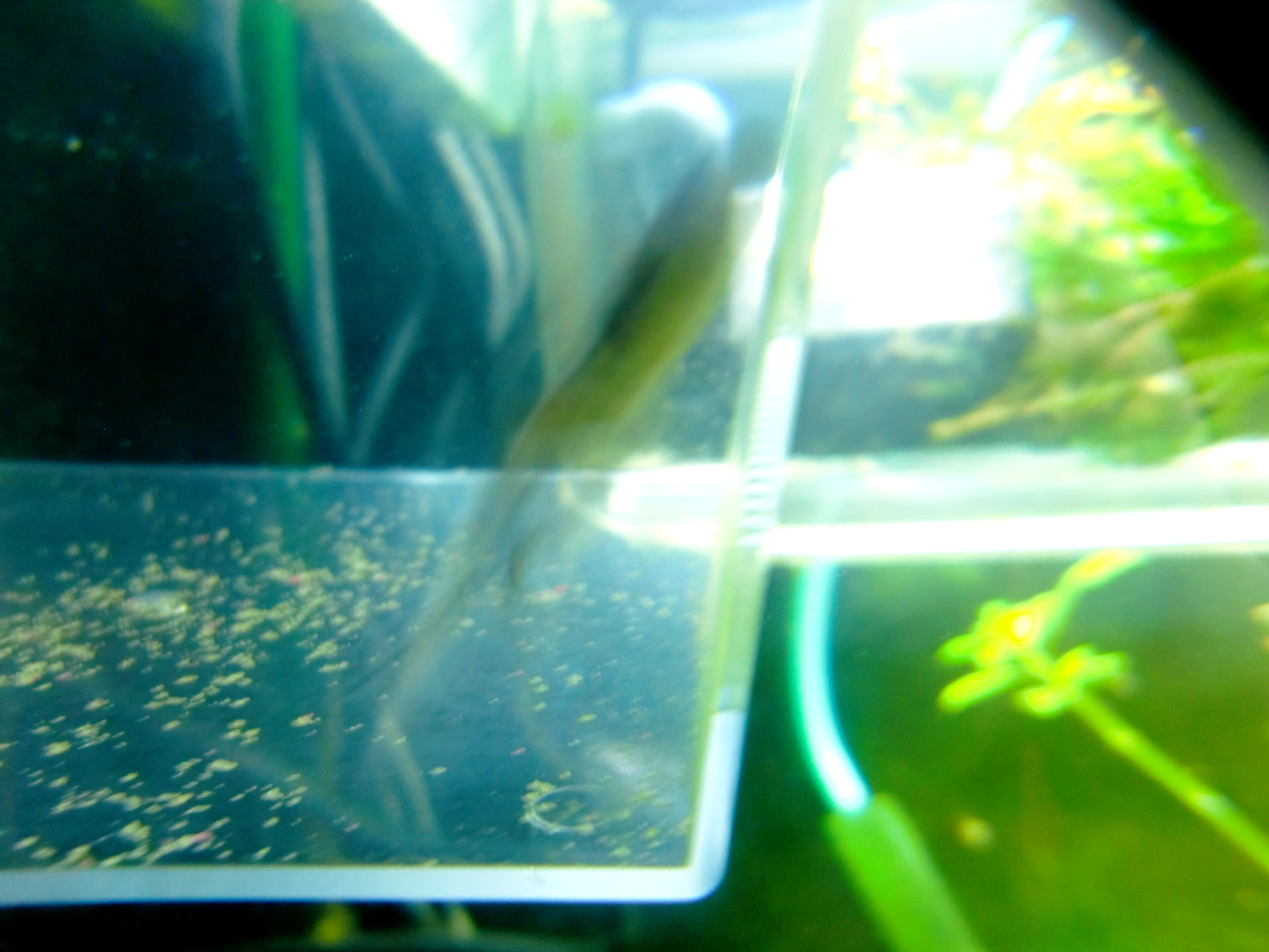やれんのか!サカマキ貝【退治しちゃうぞ】 生きもの 2014年06月20日 人目につく玄関にあるのに、スネールいっぱい夢いっぱいのこの水槽。(2014.6.23追記) サカマキガイは水槽内の嫌われ者とよく言われますが、本当に嫌われているのでしょうか。 思い切って動画の主役に抜擢してみたこともありました。 再生回数は…。 なんで思い切っちゃったのか、自分でもワカラナイ。 さてさて先般のカラムナリスがおさまって一月ほど様子を見たので、次は何しようかと、よく水槽を見るとサカマキ貝の数が以前よりもかなり少ない。 水草が薬で溶けてしまい、引き抜いたために水槽の裏までよく見えてますが、あれほど邪魔くさかったサカマキガイは毎日ガラス面や水草の上に一匹見るか見ないかまで減っていました。 そこで、まだ水草が少ないうちに全滅させてしまえと、一週間ほどスポイトで吸い出したり手で潰したり。 一日一回5個ぐらい取れば数日で激減します。 ついに水槽内のどこを探しても見つからなくなりました。 うん、いないね。 ふー。一匹も見なくなったか。 いやーすがすがしいガラス面。 思い返せば薬浴やエビさん隔離などの作業中にも貝を取り除いていたから、それを計算に入れたら2ヶ月ぐらいは取り続けていました。 ついにやったぞ! サカマキ貝ども、出れるもんなら出てこいやあー!Hahaha!!!!111 ↓3日後。 うん、なんだこれ? たしかナントカ貝っつったよなあ。 二ヶ月間の苦労を3日で無駄にする繁殖力ですね。 もう、あのお方のお力を借りるしかないようです。 見よ!このすばやい身のこなし!! 脱ぎ損ねた背中の皮をマント代わりに、ひらりひらりと身をかわす、その正体は! ヒメの旦那! 本水槽内は… 中途半端に潰すと生き残った貝が卵産みまくるのかしら。 [0回]