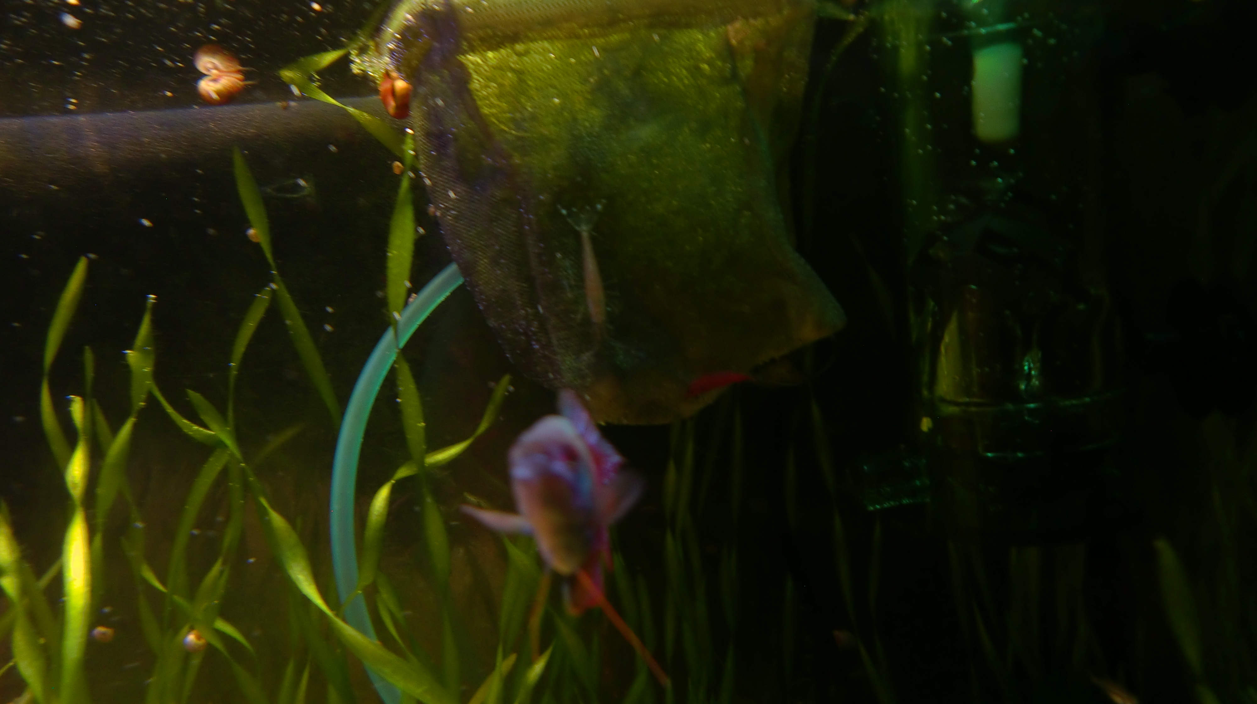 二酸化炭素の高性能な拡散器を発見レビュー 器具 2019年04月12日 拡散器を替えました。 拡散器は添加効率を上げて二酸化炭素を節約するために重要なパーツですね。 溶解効率が高い拡散器ならCO2の消耗を抑えられるからです。 2019年6月現在の添加量は5秒1滴。 今回の拡散器は高性能でかなり気に入ったのでレビュー記事にしました。 CO2の拡散器をこれに変えました。 浮いた水草と稚魚ネットがかぶってて分かりにくいですが、奥の緑の筒です。 今回購入した二酸化炭素拡散器 これは中国語のパッケージしか情報がなく、読めないけど結構使えそうです。 もっと大きい版もあることに後から気づきました。 外部フィルタなどの吐出口につけるタイプで、最初の小さい版の方は12/16mmホースにつながりました。 取り付け方 エーハイムオーバーフローパイプ12/16mmへ付ける場合は、12/16mmホースを間に付けるといいです。 その他の径のオーバーフローパイプへ付ける場合は、9/12mmホース、16/22mmホース 、エーハイム コネクター φ12/16mm⇔φ16/22mm、エーハイム コネクター φ9/12mm⇔φ12/16mm、これらを組み合わせます。 レビュー 私にはかなり有効な特徴があるように感じます。 1 溶けきれなかったガスが拡散筒内にためられる(水面に逃がさない) 2 拡散筒内に外部フィルタホースからの水流を通せる(渦を巻いて溶かす) 3 CO2ストーンから細かい泡を出し溶解効率アップ 4 吸着ろ材とかを入れられる 5 方向が変えられる(下の吐出工が左右にまわせる) エルボが付属しているので上下角もつけられる 6 インラインではないのでメンテで外部フィルタを止めてホースを外さなくてよい 外部フィルターの排水パイプにホース(12/16mm)をかまして取り付けました。固くて入らない場合はお湯をコップにとってホースを浸せばホースが柔らかくなり取り付けやすくなります。 吐出口へつけるタイプの利点 二酸化炭素を節約するために、添加効率の高い拡散器にしたかったのですが、高効率だと言われるものはインラインタイプばかりですね。しかしインラインは困るんです。 インラインタイプではないというのは、私にとって重要で、4年も外部フィルターのホースを外していないので外すのが超面倒なんです。 インラインタイプは掃除のために頻繁に外す必要があるとも聞くので、そのたびに水漏れの危険があって(外部フィルタの掃除で何度水をあふれさせたことか)は困るなあと思っていました(インラインタイプは私はエアプですよ)。 高効率、メンテでホースを外さなくてよい ホースを外す用事は他にないのでインラインタイプを避けたかったのです。 外部フィルタを掃除しないのって聞かれそうですが、小型魚しかいないうえに外部フィルタの前に底面フィルターをストレーナー代わりにしているので、ここで物理ろ過されるから、外部フィルターは汚れが詰まることがありません。 一番には外部フィルタ内部の生物環境を壊したくないという決定的理由があります。この部分について詳しくはこちらをご覧ください。 性能発揮は3日後から この拡散器もストーンを使用します(付属)。ストーンを使って細かい泡を出すことは添加効率アップには欠かせないらしいですね。 細か目のストーンなので、発酵式だと圧力が足りず無理かもしれません。あと発酵式は汚れやすいからすぐ詰まってしまうのでは。ただストーンを普通のものに交換すればいいかも。 ストーンからの泡は取り付けて3日ほどは大きい泡しか出なかったけど、0.1mmぐらいに細かくなりました。 写真右上が拡散器 とくに浸して数日待ったわけではなく、すぐ取り付けてしまったけど、電磁弁で夜間は炭酸ガスを停止しているので浸ってきたのだとおもいます。 取り付けて数日は発生する泡が大きいので溶けきらないこともありましたが、泡が小さくなってくると溶けやすくなるみたい。 光を当てないことで 藻類の付着量が劇減 上の写真が暗いのは藻類付着防止のため遮光しているからです。 メンテ回数を減らすことができます。 この拡散器もそうですが、配管や器具類が目立たくなるから美観的にもいい手だと思いますよ。 拡散力をテストしたら スピコンを1秒10滴ほどに開けて二酸化炭素を沢山送り出して、筒内に貯めるだけ貯めてから1秒1滴に戻してみたら、筒内にあふれた二酸化炭素がみるみる減っていくのが目で確認できました。吐出口から泡が噴出することなく。 筒内の渦の中でガスがみるみる減っていくように見え、水位が戻っていきました。 一秒で1㎝筒内の水位が上がるような感じで。 凄い勢いで溶けますね! ガスを筒内にたくさん貯めると、圧がかかるからよく溶けるみたいです。もっと下に拡散筒を設置すれば水圧でもっと溶かせるのかもしれません。 ただ、溶かしすぎて 水草が間延び ビーシュリンプが全滅! 酸素の気泡がとくに出ないうちからです。 なので CO2濃度を上げすぎないようにバブルカウンター必須! 水質調整にも! これの筒の中に2個プラスチックろ材が