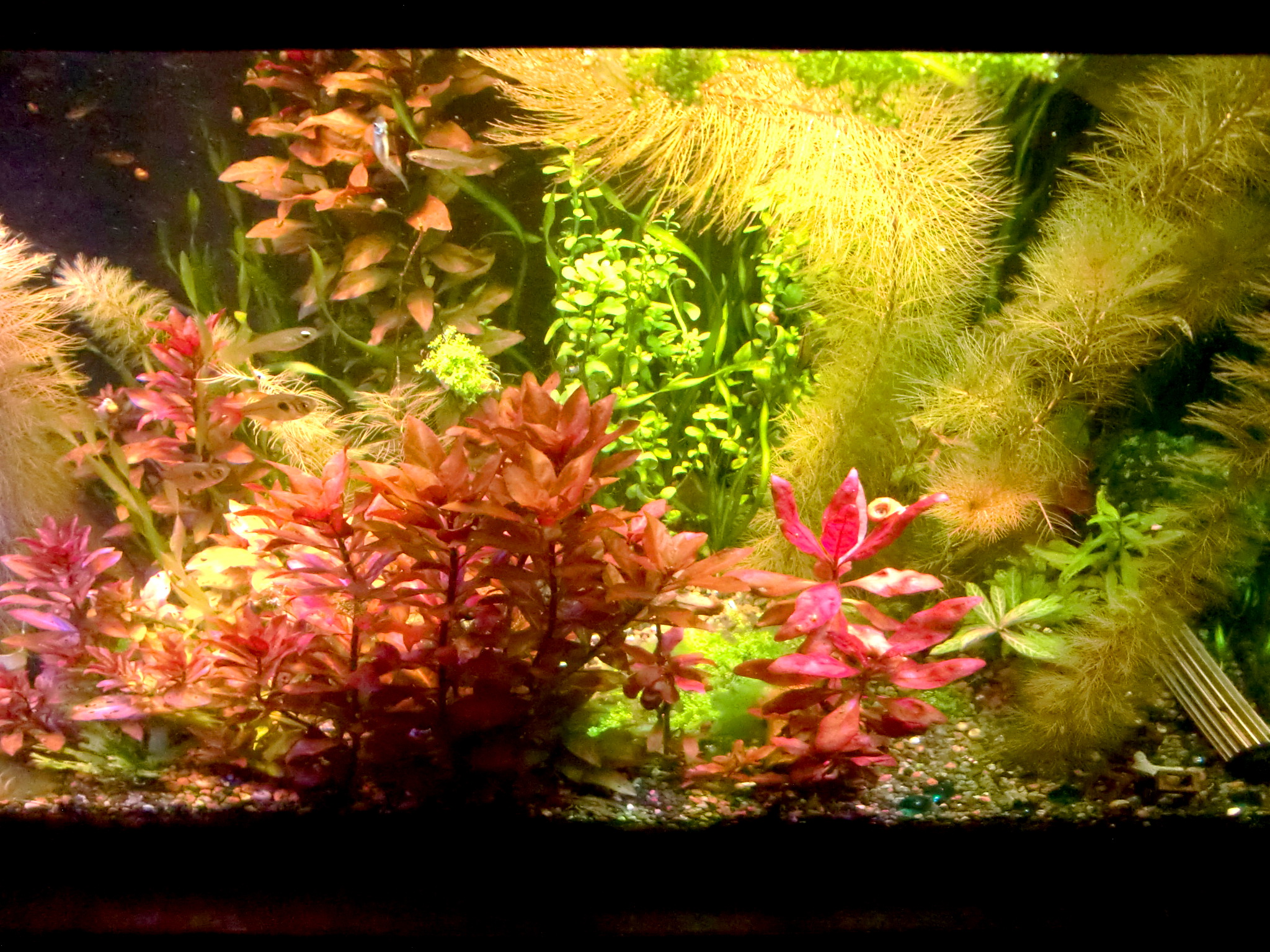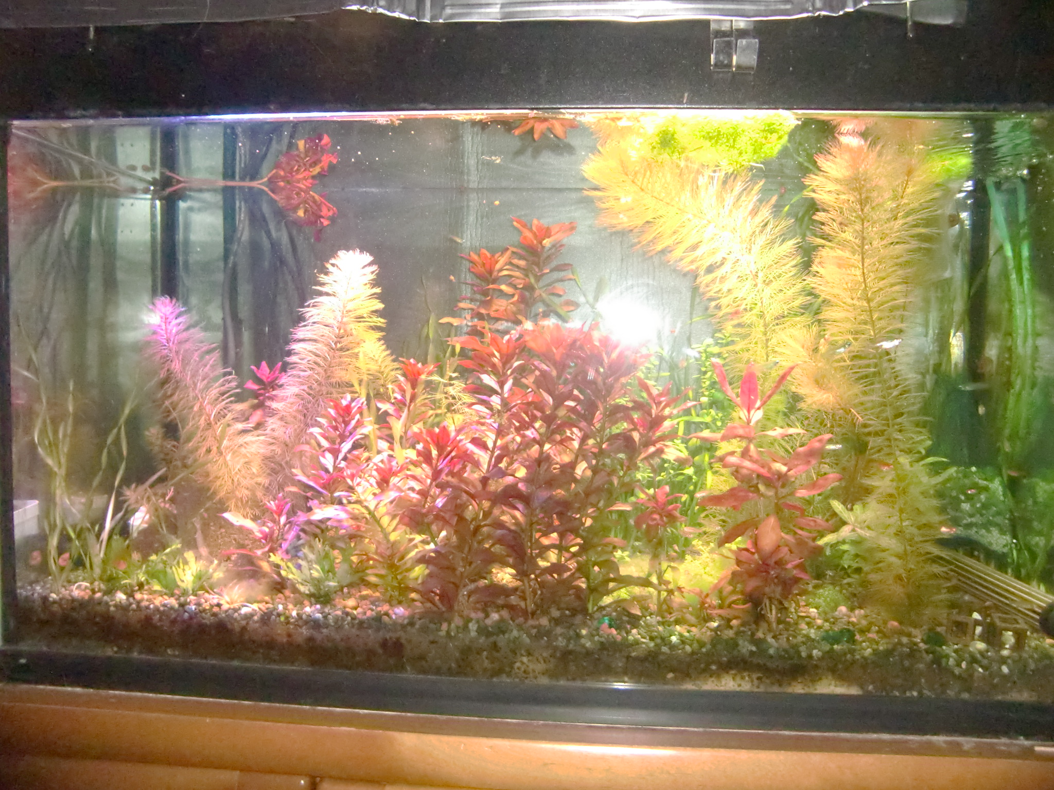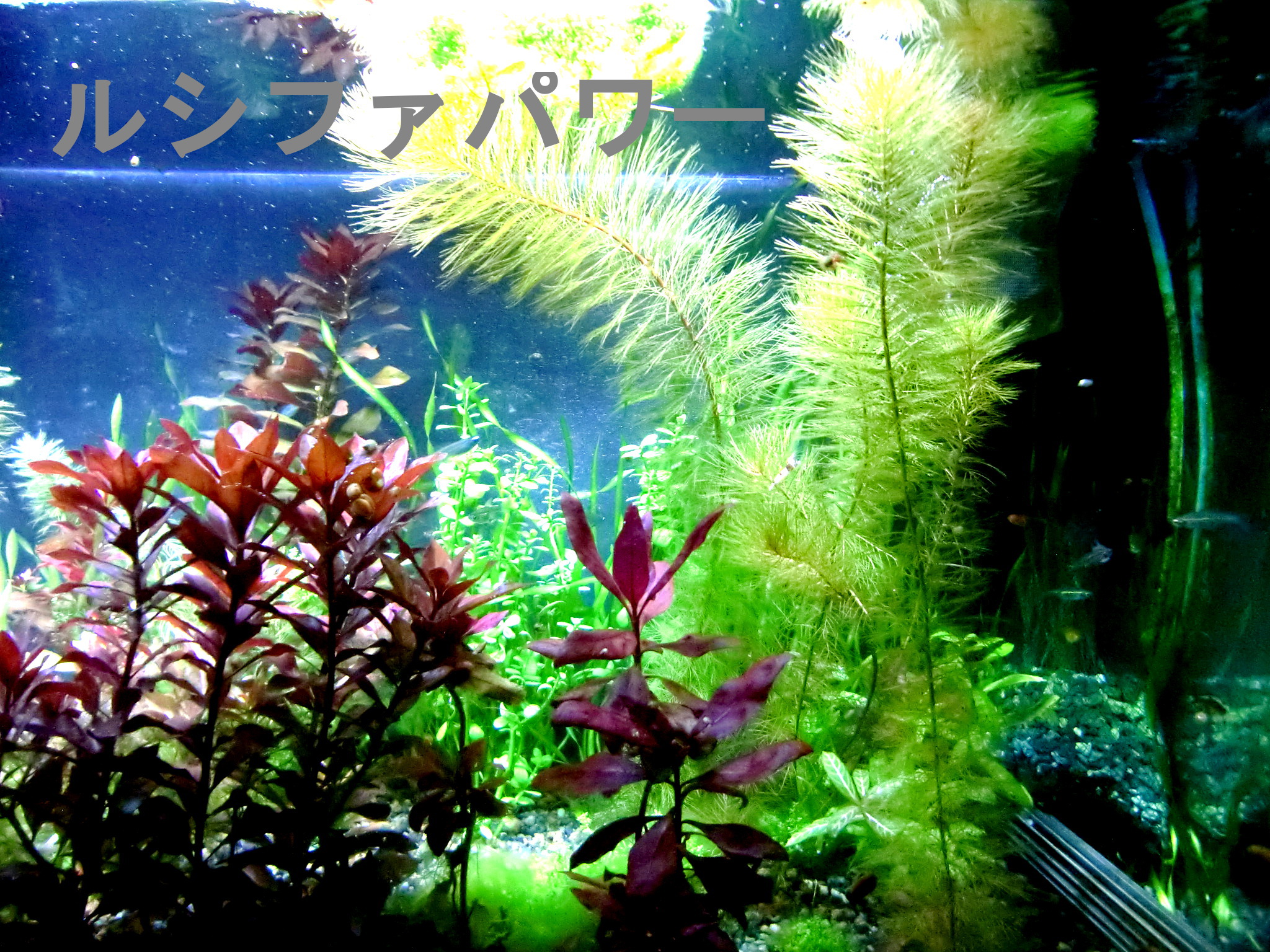 白色LEDの比較撮影 LEDライト 2019年03月08日 現在使用中の白色LEDの映り方を比較するための写真を撮影しました。 前置き 各白色LED機種(ほぼビームランプ)を一つつづ同じ場所に取り付けなおして撮影しました。 財布的な都合により一機種につき一個だけしか点灯できないので、写真映えしないです。とくに周りが暗いのは、カメラの都合上、光が集まって強い証拠だということに留意してください。周辺が真っ暗なわけではありません。 ※明るさはカメラの測光機能により平均化しているので、色味だけの比較用です。 同じ設定で撮影すると暗い電球の写真が真っ黒になるからです。 カメラのホワイトバランスは「昼白色蛍光灯」という設定。 古いデジカメなので場面に適した調整がうまくできないので、GIMPというソフトで明るさとコントラストだけを調整。 LDR12L-W/150W 東芝ビームランプ電球色150ワット形相当 LDR19L-D-W(後継機種LDR12L-D-W/100W 演色性重視 100W形相当 電球色) 明るさは落ちるものの、緑色の葉の色合いにご注目。 60W型CCFL(蛍光灯電球と同じスペクトル) 比較用です。明るさはかなり落ちているけど増幅してます。 LDR12N-W/150W 150W形相当 LDRは東芝製ビームランプです。 一番上の2つは電球色という色温度のビームランプで、効率型と高演色型では同じ色温度でも見え方がかなりちがうことが映っていますね。 効率型は昼白色と電球色の2つあり150W型白熱電球と同等の全光束です。 高演色型は電球色しかなく、100W白熱電球と同等の全光束です。 CCFL電球は3波長蛍光灯と同じ色の出方をするので基準としてご利用ください。 この写真で明るさは比較できません。 カメラが自動的に調整するからです。150ワット形相当という機種が100ワット形相当と同じような明るさに映っていますが、肉眼では150ワット形相当の方がずっと明るいのがわかります。 またCCFL電球は水槽の上方向にも光が飛んでいく都合と60ワット形相当であることから、かなり暗いです。 電球色効率型のLDR12L-W/150はファンタジアタイプが故障したのでメーカーに問い合わせたら交換対応という形になって、ファンタジアタイプが廃版のため、こちらを受け取ることになったものです。 普段はこれらすべてを照らしてさらに2つの海水用スポットライトをてらしています。 海水用スポットライトの色は青や赤がかなり強いものがあります。 緑が強いものがないのが残念。 海水用スポットライトの機種はグランクリエイトで、保証期間以降も修理対応ができるところがポイント。 その分ただの輸入代理店より高価かもしれませんが、「1年以上経過して壊れたら問い合わせても無視」というのを2つの販売者から食らっているのでメーカー選びは大切だと思います。 海水用スポットライトも点灯しています。 フラッシュを焚いて撮影した写真。 真っ赤な葉の水草の育て方は、なんといってもできる限りビームを当てることに尽きます。CO2はあった方がいいらしいです。 底砂は大磯でも可、というかソイルはいたずら程度に園芸用を少量撒いたことしか。藻類のもとになってしまったのでいらなかったかも。 赤い葉と緑の葉の美を綺麗に鑑賞するにはビームランプの機種選定にこだわることになると思います。 ランプ取付基部はカミハタアーチスライドBS900とDS900を使ってますが、60㎝未満の水槽にはカミハタ製にはないのでコトブキ製のスタンドも選択肢でしょうか。 ●コトブキ ライトアームスライド90~120cm水槽用スタンド ●コトブキ ライトアームスライド30~60cm水槽用 ●カミハタ アーチスライド BSベーシックセット 600横600~720ミリの水槽用スタンド DSダブルシステムキット600でバーを2本にできる ●カミハタ アーチスライド BSベーシックセット 900横720~970ミリ DS900で2本に拡張できるし丈夫で安価。 基部が樹脂製でガラスを痛めにくい。 DSで2本にしてます。高さも段階調節でき、ボルトを穴にはめるタイプだからずり落ちないです。写真は最低限の高さ。361~561mm3機種共通。 横は無段階調節。 水槽上部のごちゃつきを消しゴムで消してみたけどBSのよさは伝わるかな? ●カミハタ アーチスライド BSベーシックセット 1200横970~1220ミリ DS1200 アーチスライドにクリップソケットを使用してます。 【マルカン】クリップソケット ライトの光が直接目に入らないようにフードを粗製乱造しました。 百均のレンジフードに百均ハトメパンチで穴をあけて、紐を通し、アーチスライドに結びつけるだけで、光をさえぎってくれます。 布なども重ねてパンチを空ければ見た目も整うかも? おまけ 廃版になってしまった名機なアクア用白色LED 周りまで明るいですが、長方形に照らすのでガラス面を照らさずにすむところが名機でした。 [0回]