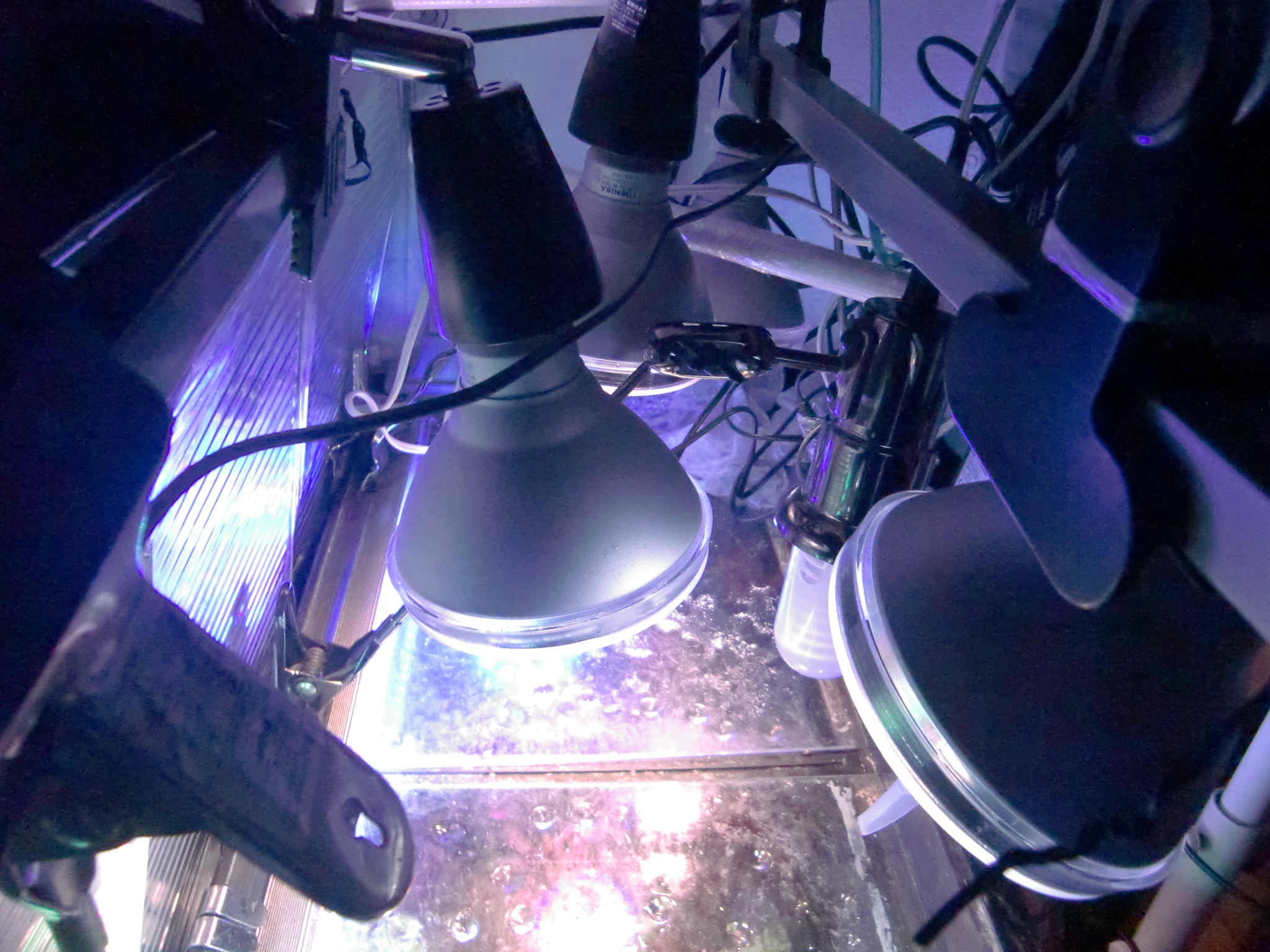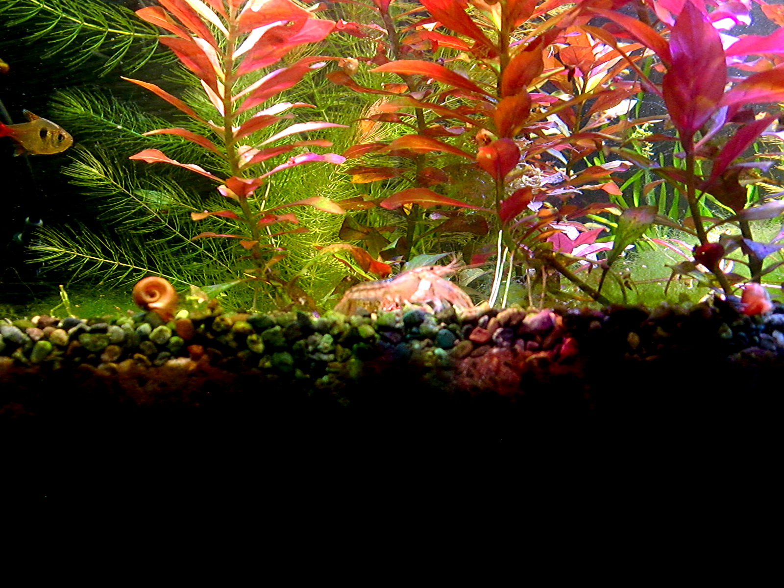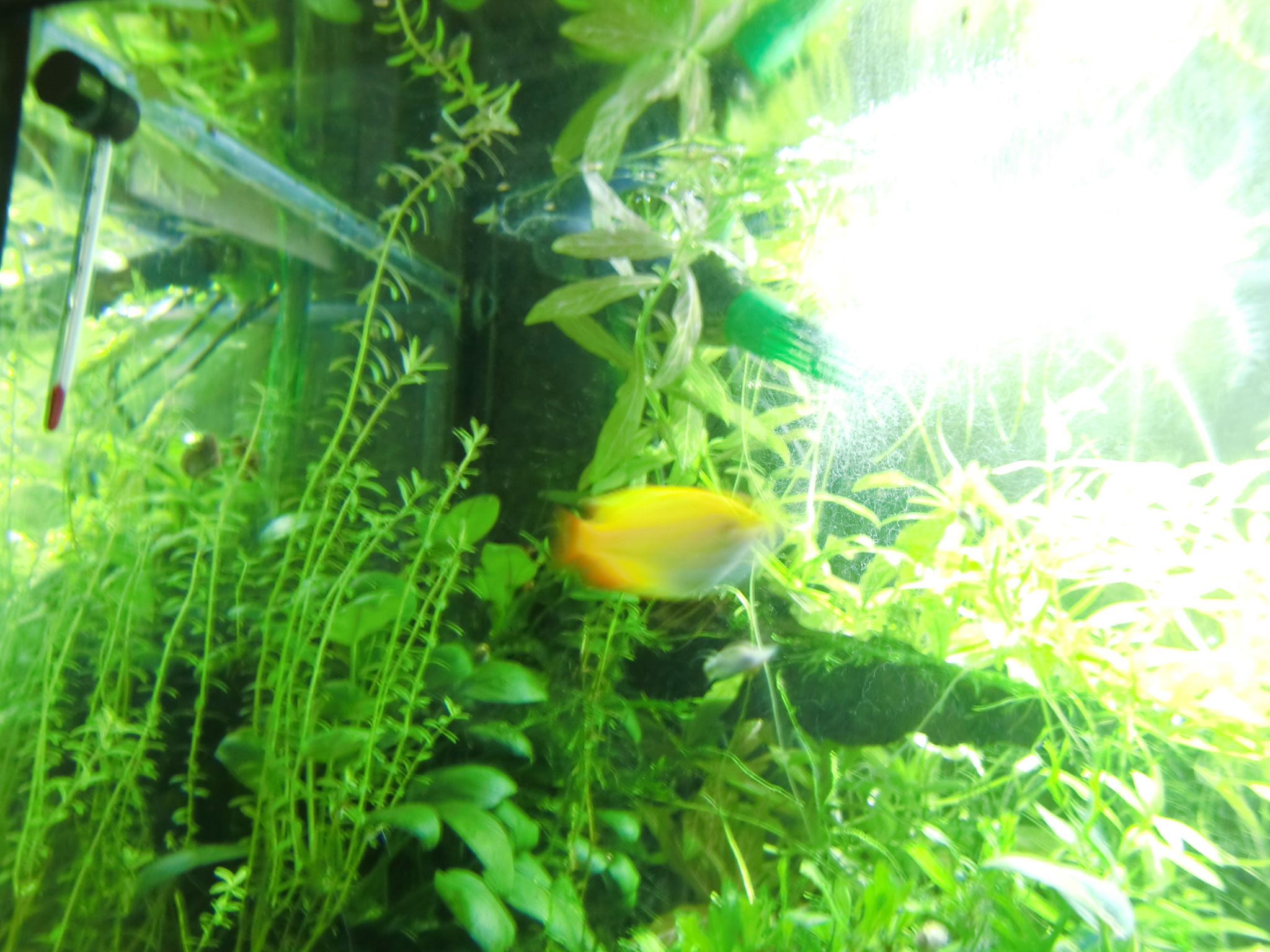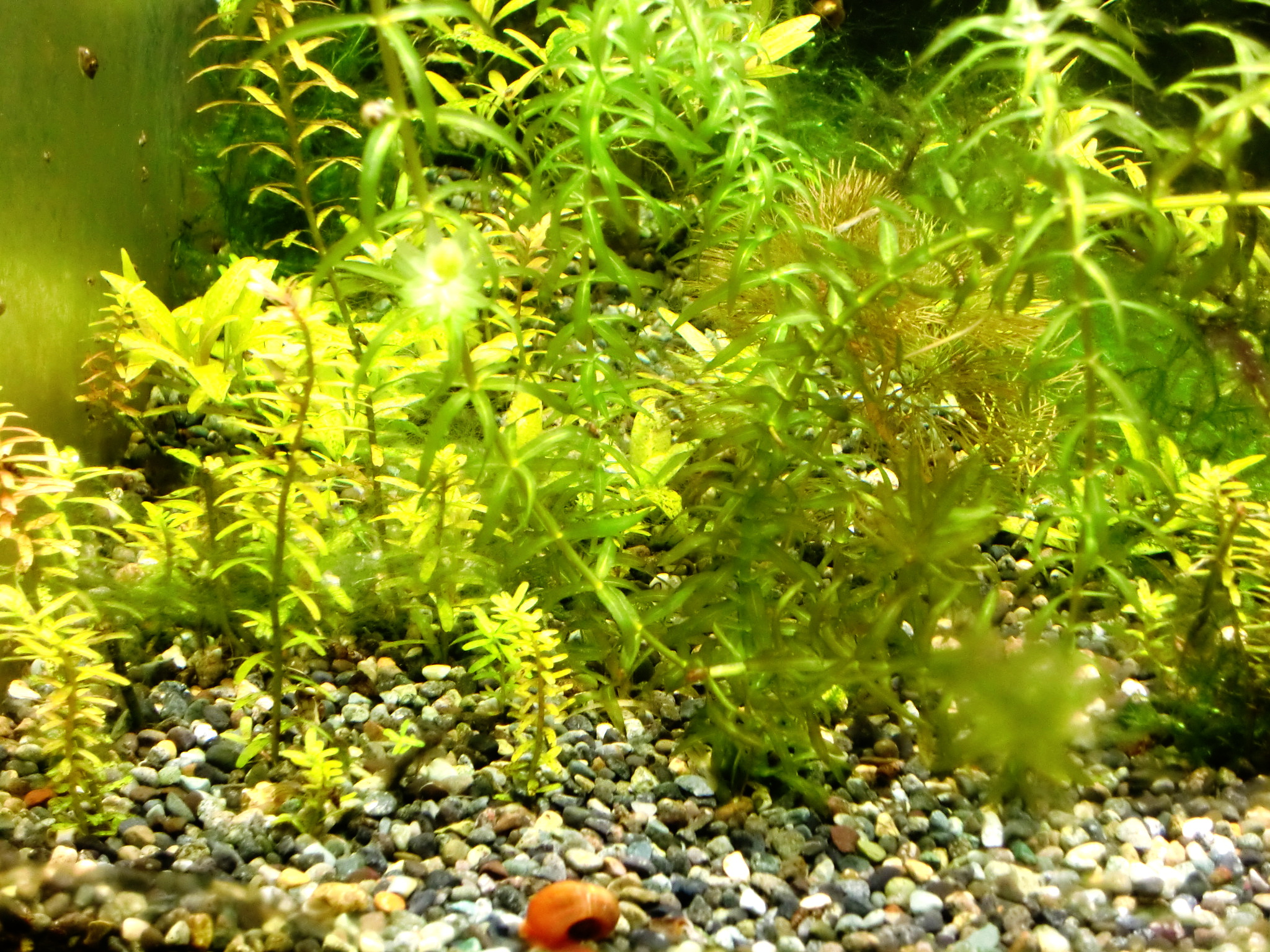 赤系水草の肥料は? 鉄分で赤くなる伝説 水草 2019年01月25日 赤系水草の入った水槽に鉄分を施肥、添加すると葉が赤くなると信じられているその理由は。 緑の有茎水草を育てられる方なら、本当は赤系水草も同じように簡単! ストック水槽もとくに必要ないです。 ルドウィジア・レペンス・ルビン、ロタラ・インディカ、ハイグロフィラ・ロザエネルヴィスの斑紋などを赤く育ててきた経験上、はっきり言うと鉄分の添加は控えめが一番だと考えています。 「鉄分の添加で葉が赤くなる」は都市伝説だからです。 再現しないことが多い。 鉄分肥料を入れても水草が赤くならないで藻類だらけになることがよくありますね? UFOの正体が気象現象だったりするのと同じで、「誤解されやすいカラクリがあるだけ」なのです。 当ブログでは赤くなった水草の写真を幾度もUPLOADしながら報告しているので、よく見に来られる方々はとうにご存知かもしれませんね。 私が初心者のとき赤系水草の情報を知らずに店頭での美しさに惚れて購入したときは、緑色の状態しかキープできませんでした。 写真左端のひょろひょろの有茎水草はロタラ・インディカです。 このように赤くない、または緑になってしまうのが普通だと思います。 勘違いする原因 育てている草が赤系水草なのに緑になるのは、多くの場合、 栄養や水質ではなくライトにレンズがないから光が足りないだけです。 しかし、鉄分を添加すると、弱いライトでも、赤い葉を見ることができることがあります。 それはなぜか。 間延びすると赤い葉が出る アクアリウム用のとりわけ水草用と銘打たれたライトは全光束が大きいので、水面付近の葉なら赤くできます。 全光束が大きいライトなら、すぐそばの水草を赤くすることができる。つまりちょっと離れるとレンズがない限り赤くできないのです。 鉄分を添加すると、水草は間延びしやすくなります。 間延びしたので水草が水面まで伸びたから、新しい葉がライトに近いので光をたっぷり浴びて赤く成長。 というなりゆきによって、鉄分が必要なのではという誤解をしやすいだけなんです。 こういう誤解をするということは使用しているライトが弱いからです。 差し戻せばわかるライトの弱さ その証拠に、赤くなった部分をカットして、底へ差し戻すとその葉も次の葉も緑に戻ってしまいます。 さらに、そこへ鉄分を再度添加しても緑のままで、藻類におおわれて育成に失敗したりします。 カットしたての短い茎は、いくら間延びしたとしても水面付近には届かなかったからです。 赤系水草が水面付近しか赤くならないのは、水質でも肥料でもなくライトが弱いからなのです。 当ブログの写真では水深は全く関係なく赤くなっています。 緑色になってしまう葉もあるのですが、ほぼ赤を堪能できるような状態。 これは「鉄分のコントロールが絶妙だから」などという、伝説の仙人的な話では全然ないのです。 現在のルドウィジアのトリミング期間は4~10週間。 水深が深くて底のあたりから育てることと、間延びしないから、そんなにトリミング期間が短くなりません。 写真の状態から言っても、水草の状態をキープするのが上手ではないのがモロバレではないですか?(笑) 赤系水草のだいご味 赤さを増すためには、光をいかにして当てるかにこだわることが大事。 隣の水草が急成長してかぶってしまうと緑色になったりするので、光のコントロールが一番気を使うポイントです。 「強い赤を引き出す」面白さ。 ライトが強いと 高度なレイアウトがなくとも赤くなる 高度なレイアウトというか、ダッチ式とかネイチャーアクアリウムという一種の流派では、赤い水草は頂点だけが、上の方に見えるように、根元を流木や中景種などで隠すようにレイアウトするものですね。 赤い葉は水槽の上の方でしか維持できないことが経験的にわかっている方々のやり方が根付いたものなのでしょう。 水面付近だけだから、トリミング期間が非常に短いので大変面倒な方法なのでは。 トリミング期間が伸ばせる しかし、私のようなヒドいレイアウト技術でも、ライトを適したものにすれば、全然問題なく赤い葉を鑑賞できるようになります。 赤系水草を鑑賞したいから手前に植えるという当たり前のことが、ライトをかえることでやっと許されるんです。 生き物の混泳が好きなのでレイアウトのために大きな改造はできない(生体に壊される)けど、赤系水草も楽しみたいので、水槽の手前に大々的に植えています。 ライトが強ければ、後景種であっても間延びしないため、前景水草を手前に置いて根元を隠す必要がありません。 隠れやすい生体を鑑賞できる そのため、隠れやすい底モノの生体を入れても、奥に隠れる所がないなら、手前にも来てくれて鑑賞ができる利点があるのです。 下はドワーフザリガニと赤系水草「ルドウィジア・レペンス・ルビン」の根本の写真 蛍光灯だけを点灯してもこんな色です。赤いランプを照らして